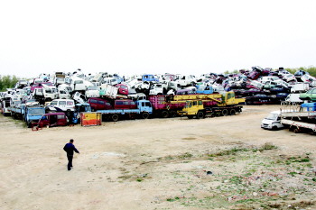 29日中午,泰山拆车公司位于高新区的停车场,门口一块大大的“黄标车回收处”牌子引人注意。记者看到,面积不大的场地里,废旧车辆堆起七八堆,每一堆都有六七米高。工作人员焉军说,此处已经停放上千辆,基本饱和,现在黄标车回收主要在公司驻地,位于泰安一中西校西邻。