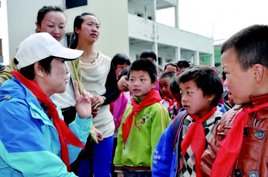 张文莉在毕节助学时与孩子们交流。 (资料片).