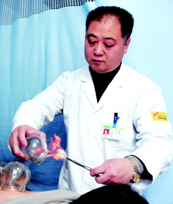 李书耀正在为患者拔罐。本报记者 张晓科 摄