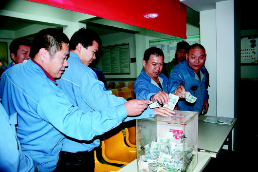 大众出租车公司的师傅们在为“新年新衣”活动捐款。
