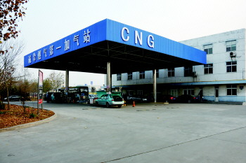 在张店昌国路附近一加气站内出租车正在加气。 本报记者 王鸿哲 摄