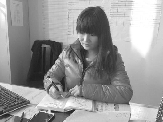 周艺在办公室帮老师整理材料。 实习生 孙聪慧 摄