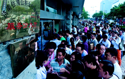 ◥市民排队办理公积金业务。(资料片)