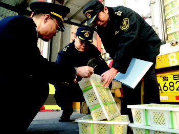 27日,在青岛东方鼎信国际农副产品交易中心,青岛大港海关、青岛检验检疫局工作人员共同为越南龙眼、泰国榴莲、厄瓜多尔香蕉、智利车厘子4种进口水果办理申报、查验、放行手续。最快24小时,这批水果将完成所有手续,岛城以及省内各地居民便可抢“鲜”品尝到洋水果。