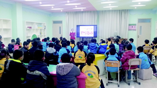 沪滨口腔科专家在授田英才给孩子们普及口腔保健知识。