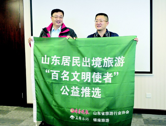 13日,由齐鲁晚报联合山东省旅游行业协会发起主办,嘉华旅游、银座旅游两家旅行社支持参与的山东居民出境旅游“百名文明使者”评选活动座谈会在济南大众传媒大厦召开,山东省旅游局副局长岳滨、省旅游行业协会专职副会长丁再献、山东大学教授王晨光、山东省旅行社行业协会会长王延辉等领导、专家莅临本次座谈会,就文明旅游问题发言。