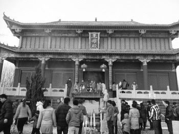 随着2015年春节的临近,碧霞元君故居景区迎来旅游新高潮,每逢周末都有不少游客前来祈福还愿、观光游览。今年贺年会期间,碧霞元君故居策划推出春节祈福、元宵节灯谜会、逛庙会、邀请剧团、曲艺队进行助兴表演等大型活动,期间穿插鼓子秧歌、舞狮子、戏曲等各种民俗表演。 刘振 摄