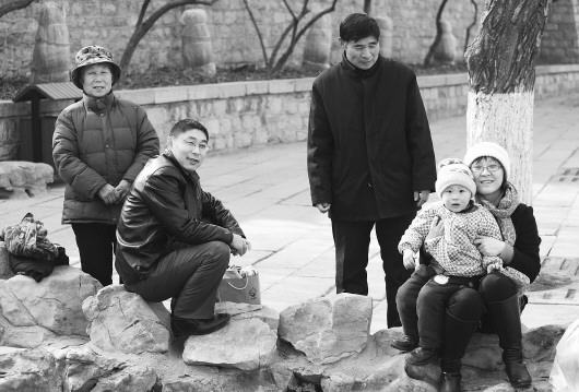 母亲要留在济南帮我们带孩子,父亲一个人回老家,打算初七回去时带走一张,我就给冲洗了一张大的。父亲说他要放在床头上,没事拿出来看看,有亲戚邻居到家里就拿出来“显摆”一下。说父亲“显摆”并不是“冤枉”他。我们兄妹四个都已成家,生活也算说得过去。拿我来说,在济南打拼十多年,买房娶妻生子,在父母看来,已经很让人知足了。