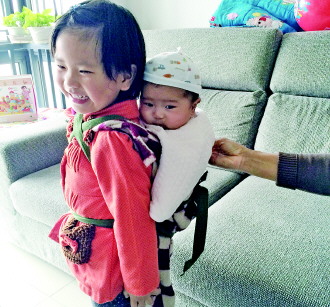 作品描述:姐姐想抱妹妹,妈妈只好给她一次背的机会。