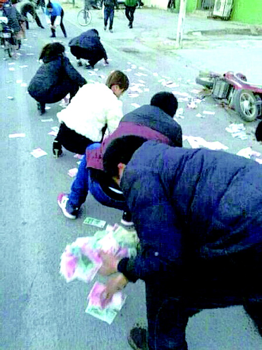 满地钞票,20余市民“抢”钱