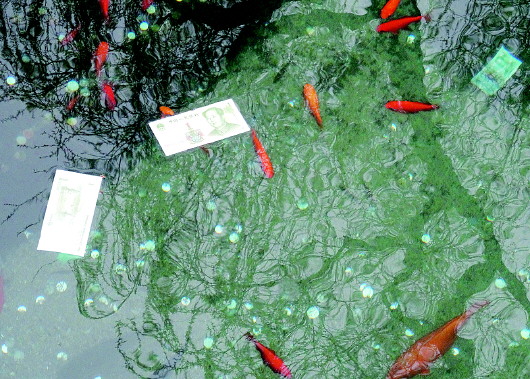 有不少游客竟将泉池当成了“许愿池”。 本报记者 左庆 摄