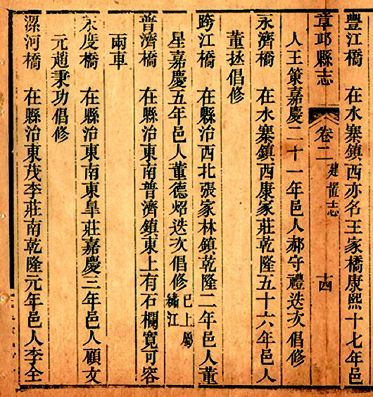 ◤清县志记载普济桥