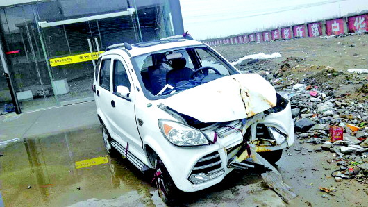 ◥因刹车失灵撞坏的车。
