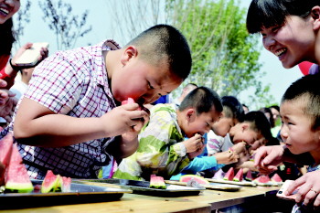 儿童组吃瓜比赛现场。