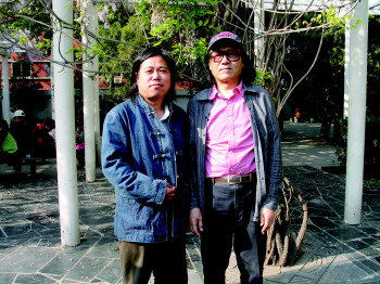 韩金玉(左)与石齐老师合影。