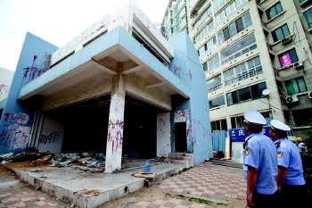 27日,市南城管香港中路中队组织工人,对澳门路大公海岸小区东侧一栋超期十年的临时建筑进行了强拆。在拆除现场,记者看到,被拆建筑有两层,与附近居民楼间距最近处不足3米。“十多年了一直没拆,1楼到4楼采光都被挡住了。”该居民楼一名住户说,这栋建筑原先是大公海岸小区售楼处,后来又被当成了物业办公室。后来,有居民说这栋建筑要被当成商铺对外出租,小区居民对此十分不满,“有人为此还砸了这栋楼的玻璃。”