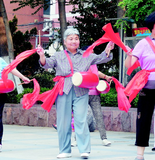 由于是特殊工种,45岁时她就早早退休了。人虽退休,可是这一身功夫却没荒废。张建玲把它带到了社区里,传授给邻居们,组建起健身队。太极拳、太极扇、柔力球、腰鼓,只要十亩园社区里和运动沾边的项目,您都能看到张建玲的身影。