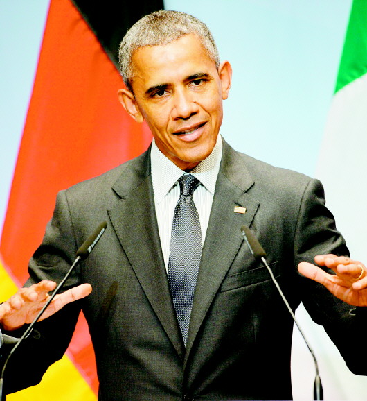 6月8日,奥巴马在德出席新闻发布会。 新华社/欧新中文