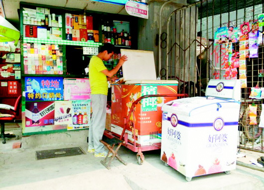 多数卖雪糕的地方,都像十亩园小区里的这家店一样,摆着大大小小几个冰柜。 本报记者 刘雅菲 摄
