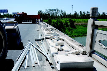 受6月10日夜间的大风影响,于官屯大桥40余米大理石护栏被吹倒,榫卯结构的桩基被折断。
