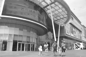 15日,大悦城门外的大屏幕滚动播放“爸爸我想对你说”短片,引得市民观看。 本报记者 吕奇 摄