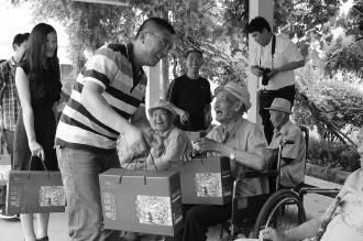 端午节即将来临之际,山东幸福人药品连锁超市联合强盛食品带着粽子、果盒、水果等礼物到滕州市光荣院进行慰问。两家企业的负责人表示,除端午节外,以后每逢重要的传统节日,他们都将到光荣院看望慰问老人,为老人带来更多欢乐,将爱心继续传递。 本报记者 张冬梅 摄影报道