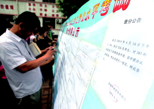 去年中考成绩公布后,一些家长和考生在查询中考成绩核查结果。(资料片)