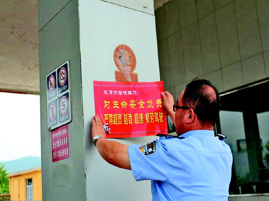 近日,根据济南市公安局对“三区三圈”治安秩序净化提升专项部署,长清交警在辖区内“三区三圈”醒目位置张贴安全宣传标语,提醒长清市民遵法行驶,杜绝超员、超速、超载、疲劳驾驶等违法行为。