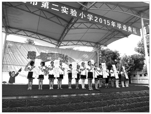 7月2日下午,莱芜市第二实验小学举行2015年毕业典礼,该校450名毕业生参加活动,8个班级的学生代表还在主席台发表了临别赠言。其中,2010级5班毕业寄语是:母校,你留给我的是美好的记忆。带着记忆,带着理想,我将披荆斩棘,努力克服前进道路上的困难,走向辉煌的未来。