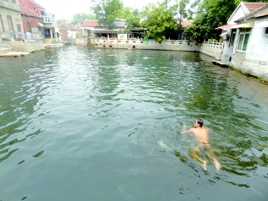如今,不少市民还是喜欢在王府池子戏水。 本报记者 周青先 摄