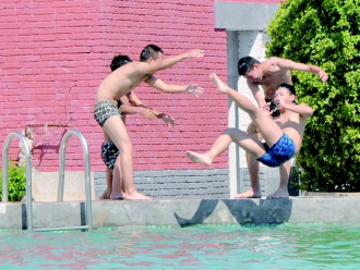 时间:2015年7月6日 自述:三个小伙子恶作剧将另一个小伙子抬起来,无论对方怎么央求,还是给扔落了水。 点评:原因还用问么,人家都穿灰裤头,就你是蓝色的,不扔你扔谁。
