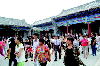 中华水上古城网络运营部经理王晨告诉记者,7月18日,三辆旅游大巴车载着150余人的旅游团队,自西城门进入古城内,在游客中心下车后,游客们首先进入七贤祠参观游览。