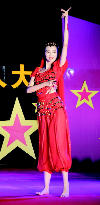 随后出场的75号选手张乐东则带来了一支神秘的印度舞,张乐东热情奔放,脸上始终挂着甜美的微笑。最终,张乐东获得9.842分成功夺得当晚的冠军。紧接着出场的78号选手王丹琳穿着一身金色演出服登台,背后那有如一双大翅膀的披风随着优美的舞姿飘动着,在灯光的衬托下,让整个舞台都变得无比绚丽。