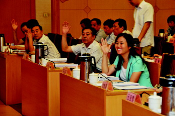 “发改委在太河水库生态补偿方面做了哪些工作?目前效果如何?”市人大代表陈福菱向市发改委主任沙向东提问。沙向东从张店区区长的位置上调任发改委主任时间不长,但是回答这个问题却非常流利,可见做了不少准备。沙向东回答完毕,陈福菱接着又问了一个问题,也是关于生态补偿。