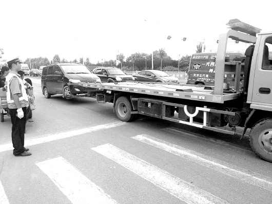 ◤交警将涉事车辆拖走。