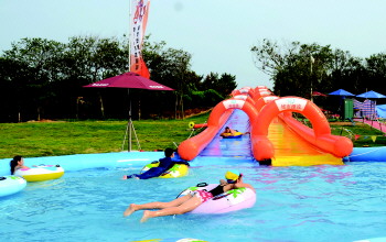 在英特堡城市漂流主题乐园内,孩子们正在惬意戏水。