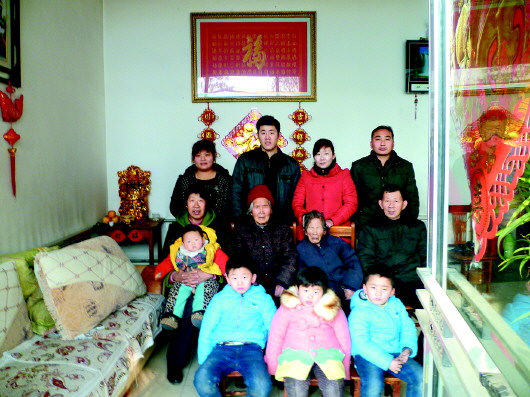▲全家福合影中排左一抱孩子者是高玉英,中排右二为高玉英的婆婆(资料片)。