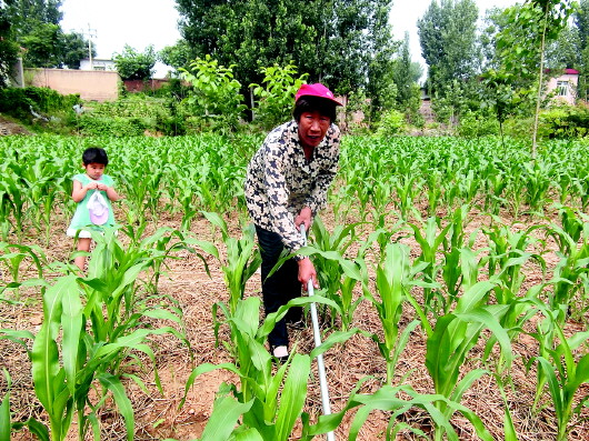 ◤高玉英头顶烈日在田间劳作。