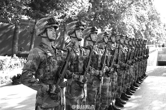 阅兵训练场上,预备队员精神抖擞。 据新华视点