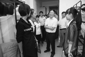 烟大校领导到宿舍看望新生。