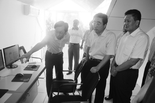 验收组查看操作截污闸远程控制系统。