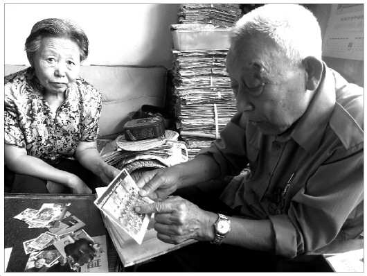 大图:滕西远老人向记者展示当年的照片。
