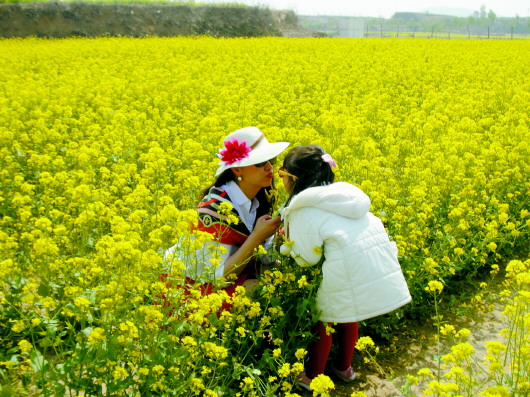 ◥妈妈带孩子亲近自然。