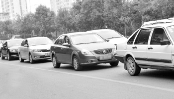 振兴路向阳路路口,等红绿灯的车很多都开着车窗。 本报记者 邹俊美 摄