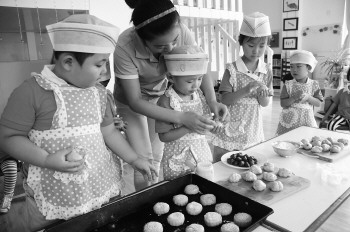 24日,在潍坊市美丽华国际幼稚园,小朋友正在老师的带领下学习制作月饼。临近中秋节,幼儿园的老师为班里的孩子都准备好了制作月饼的材料,小朋友在班里就能学习月饼的制作过程,体会了不一样的乐趣。