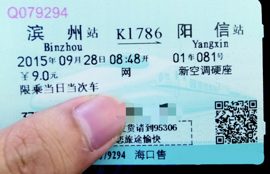 家在滨州,工作在海南,买票留念