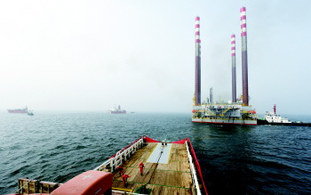 近日,胜利油田海洋石油船舶中心顺利完成新加坡籍“H1296号”油气插桩式平台的拖带,此举成为胜利油田首次承揽外籍平台的拖航。据了解,这艘新加坡籍平台总长97.37米,宽56.32米,吃水4.65米。由于这座大型平台的拖带正值渔期,平台长且高、龙须链短,惯性大,易受风、流、浪等因素的影响。海洋石油船舶中心组织专家制订缜密拖航、护航方案和应对突发事件的应急预案,确保本次拖航顺利进行。
