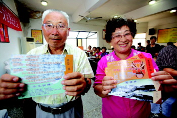 28日,在李村街道办事处,社区居民领到戏曲门票。为欢度国庆,李沧街道联合李沧剧院举办了“唱京剧迎国庆”赠票活动,邀请青岛市京剧院专业演员,在国庆假期推出六场大型现代京剧。当日共发放赠票1000张。29、30日两天还可到街道免费领取。