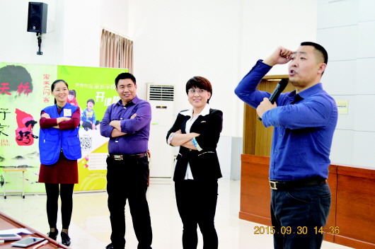 “家长学校”首讲,王力波(右一)为家长解读了孩子成长的内在密码,深受好评。