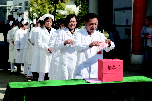 菏泽博爱医院为小常帅举行捐款。本报记者 李德领 摄